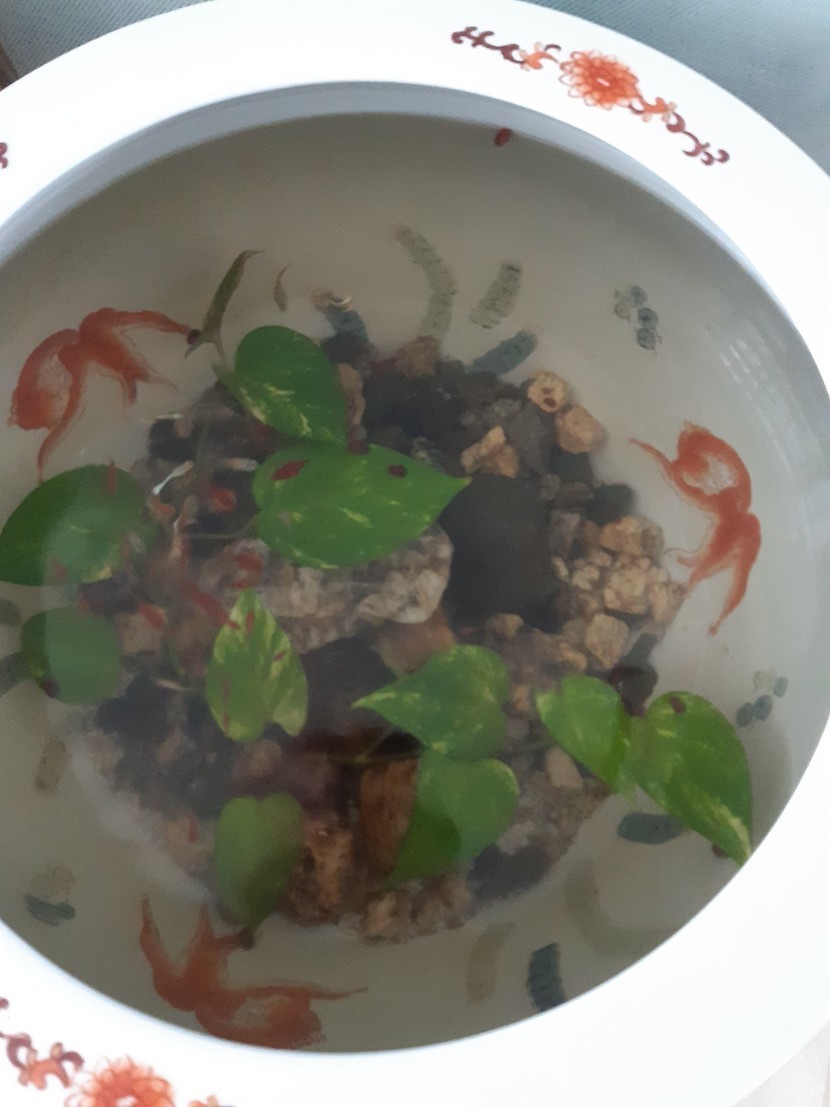우리집 도자기 어항속 구피예요