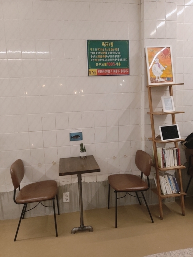 19.11.23 242 읽음 목욕탕을 개조한 카페 냥냥펀치이얍 구독하기 14 11 콘텐츠의 수익 133 전주에 있는 목욕탕을 개조한 카페에요 카페가 넓은 편은 아니지만 목욕탕 시설의 본 모습을 유지한 채 멋스럽게 바꿔놓았더라구요 그 분위기에 커피도 맛있게 먹고 왔어요 ♥욕탕 안에 식물들을 놓어두셨더라구요 어이러니한데 되게 예뻤어요 ♥이거 목욕탕 자주 가시는 분들은 다 아시죠? ㅋㅋㅋㅋ안에 들여다 보니 예쁜 자갈 위에 책들이 올려져 있었어요 ㅎㅎ보이시나요 옥탕 ㅋㅋㅋ여기에 탕이 있던 자리인가봐요 흔치 않은 색다름을 원하시는 분들은한번쯤 가보시는걸 추천해요 ♥실제로 보는 것이 몇배는 더 예뻐요 ♥ 11 0 / 300 입력