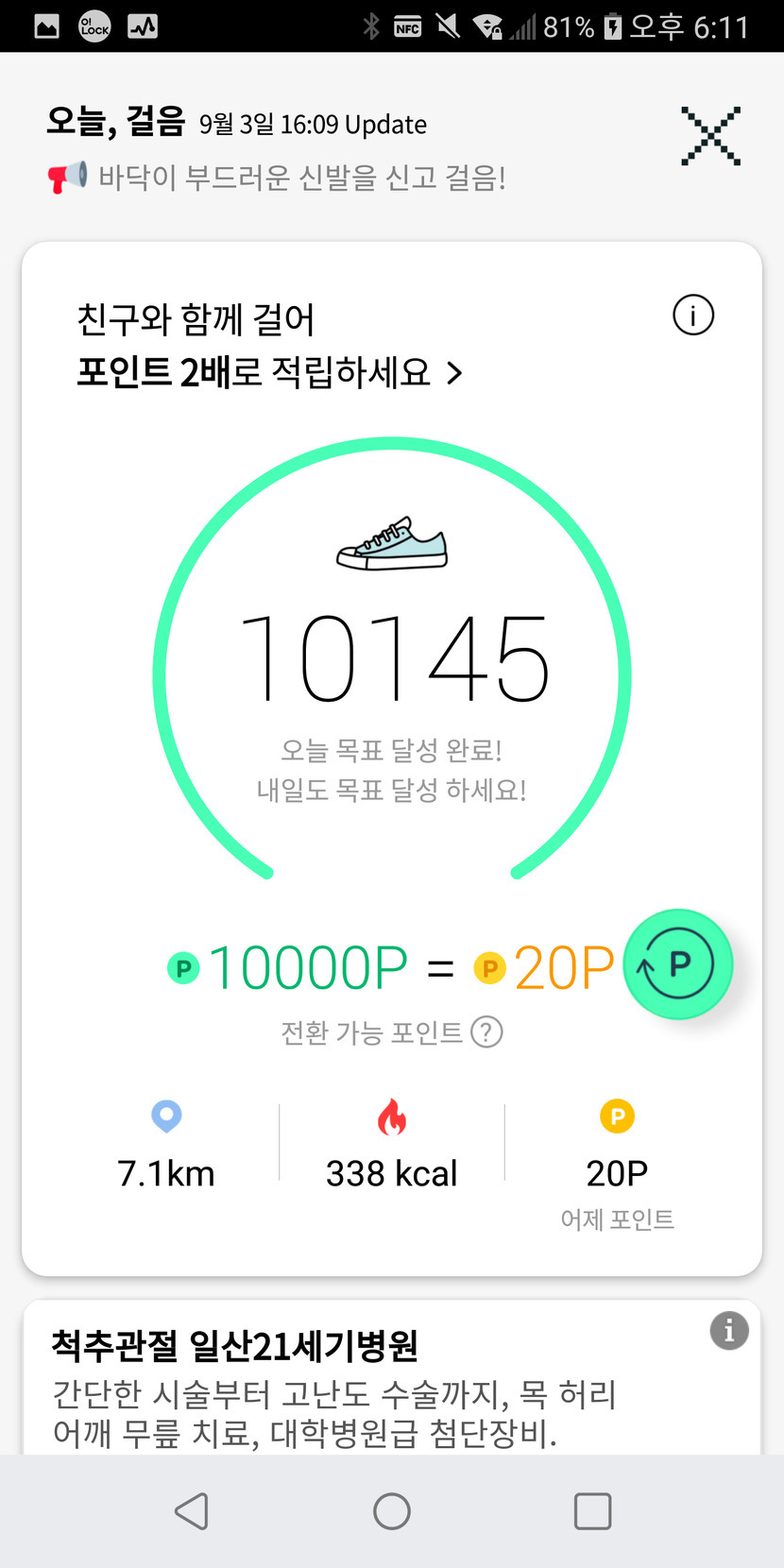20.09.03 71 읽음 만보미션 성공! 강철의메시아(답방갑니다) 구독하기 9 7 콘텐츠의 수익 9 걷기 미션 만보 성공. 거의 가택연금 상태에서 제자리걸음으로 만들어냈습니다. 근력 운동도 병행해서 더 건강해지고 있습니다. 코로나 시국이 끝나고 다시 힘차게 비상할 수 있도록 건강한 몸을 만드렵니다. 7 0 / 300 입력