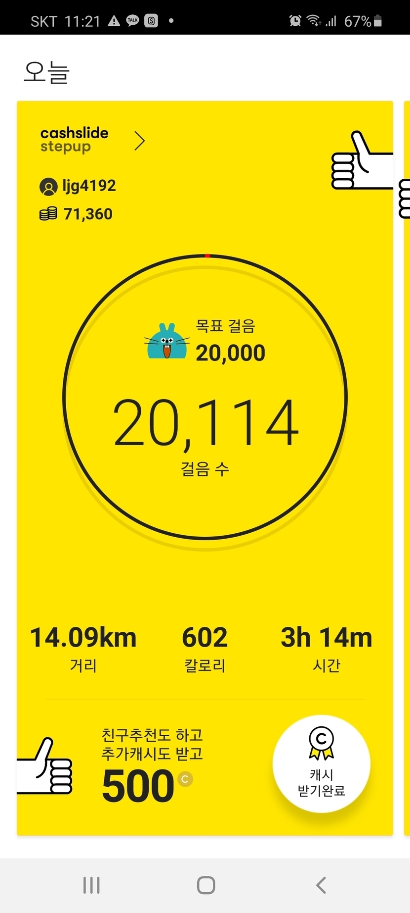 어제도 2만보 달성