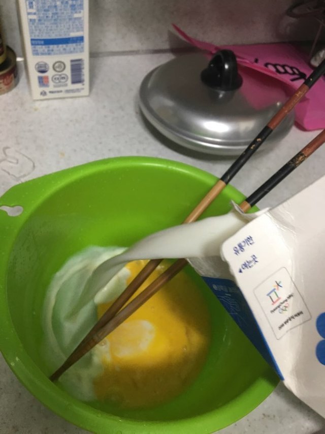2. 우유를 감대로 콸콸콸 부어준다