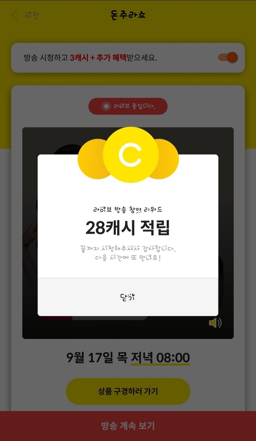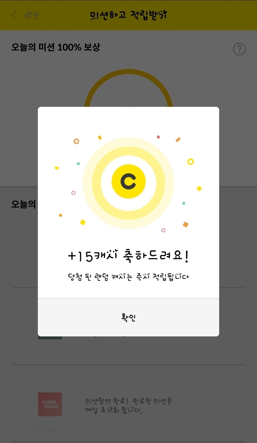 '돈주라쇼' 와 '미션하고 적립받기' 결과
