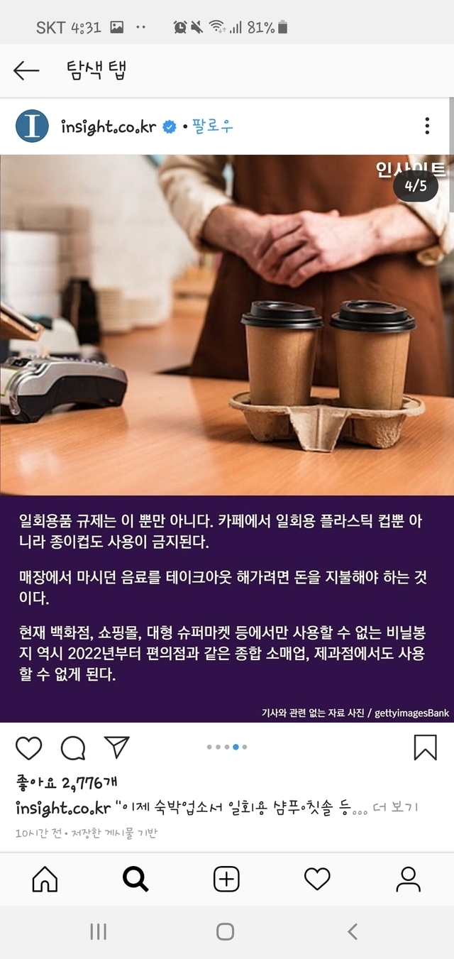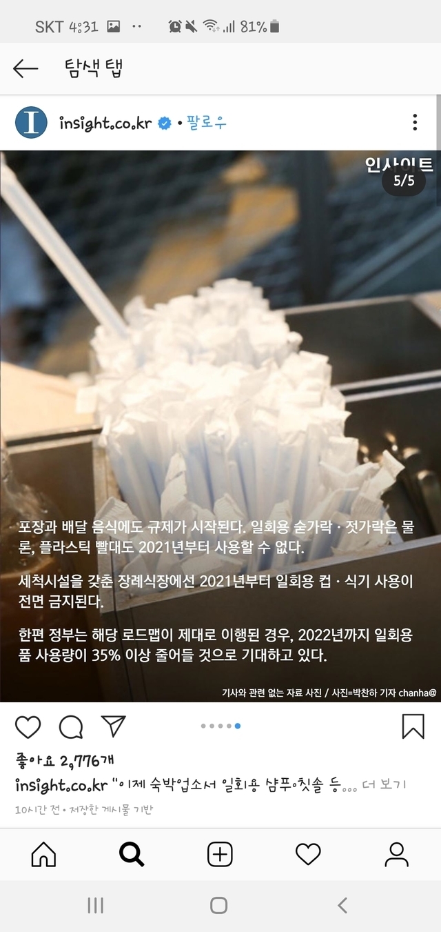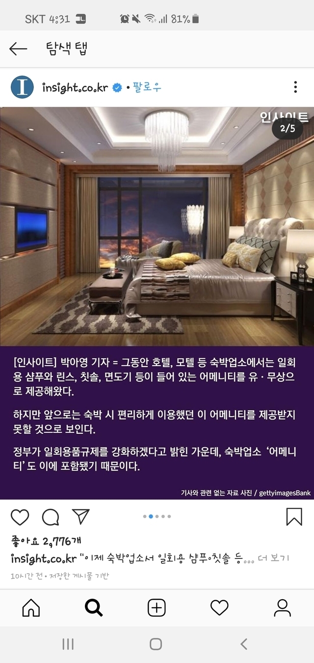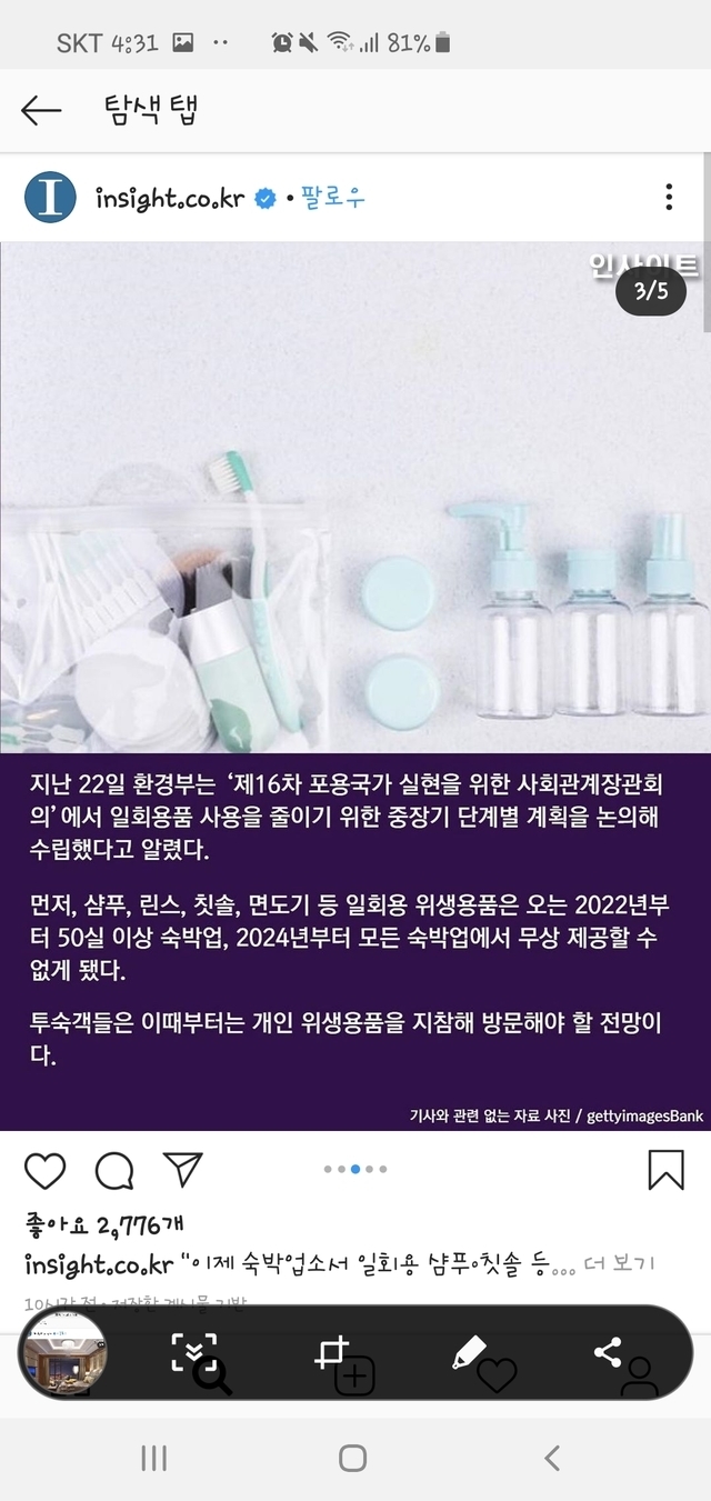 숙박업소에서도 일회용품제공 금지되네요