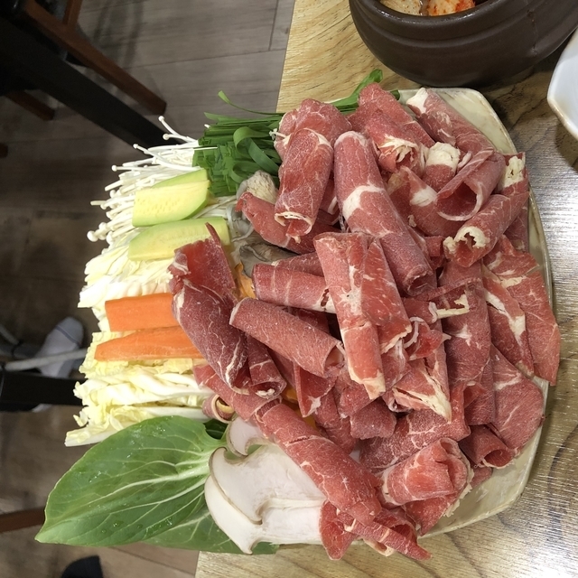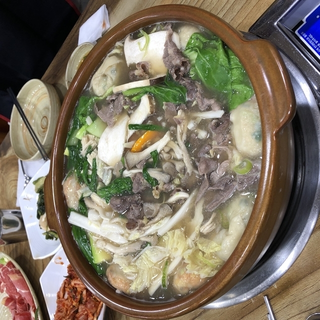 만두전골 샤브샤브느낌의 따뜻한 국물입니다~~😁만두전골이지만 이렇게 고기와 야채가 수북히 나와요주인공인 만두!