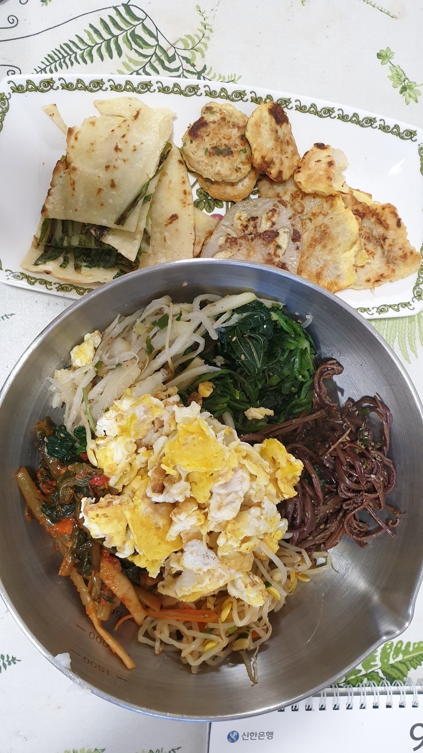 20.09.28 339 읽음 오늘 저녁은 나물비빔밥이네요 ㅎㅎ 이오1004 구독하기 49 50 콘텐츠의 수익 36 어제가 제사라 나물과 전을 많이 싸주셔서오늘은 비빔밥을 해먹었어요..ㅎㅎ각종 나물과 콩나물무침, 열무김치 넣고계란후라이 2개와 참기름, 참깨 넣고비벼비벼..ㅎㅎ 밥반에 반찬이 반오랜만에 먹으니 맛있네요. ㅎㅎ전은 조금만 데워서 같이 먹었어요. ㅎㅎ 50 0 / 300 입력