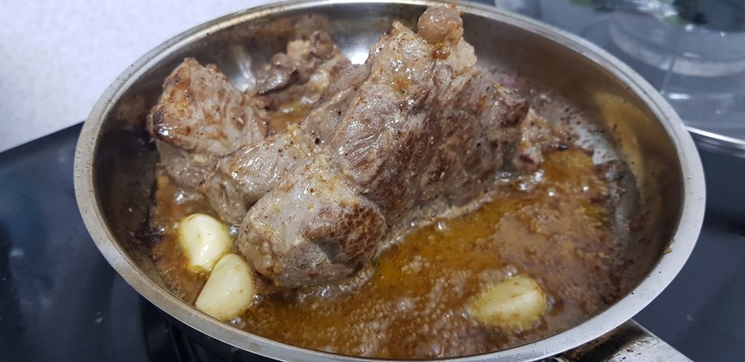 그중에 스테이크 용 고기 터서 버터로 구웠어요