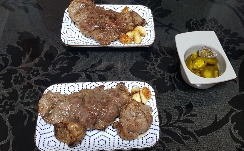스테이크 소스, 마늘장아찌와 함께 먹었답니다