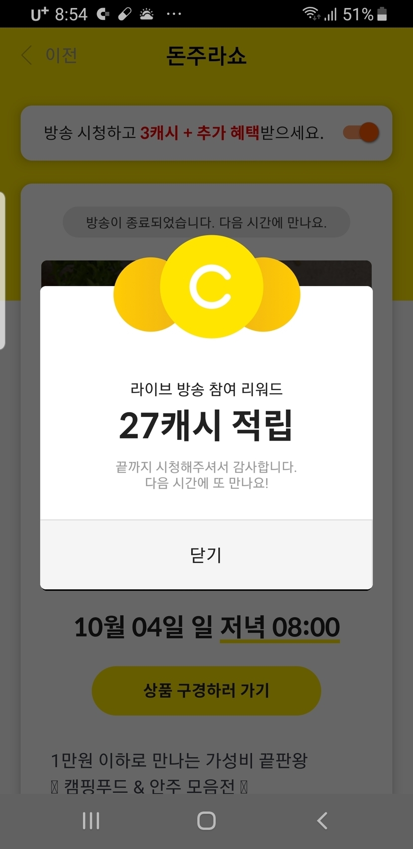 간만에주라쇼시청완료