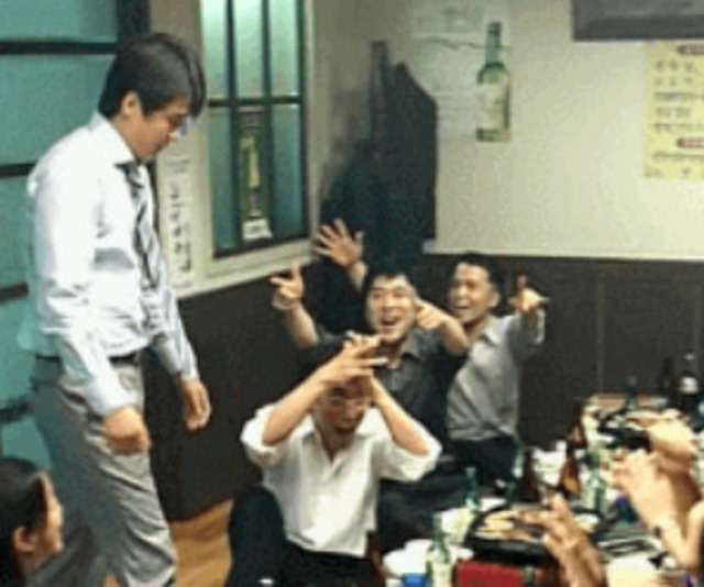 그 많은 사람들 다 차례대로 일어서서 건배사 외치고 그러는데