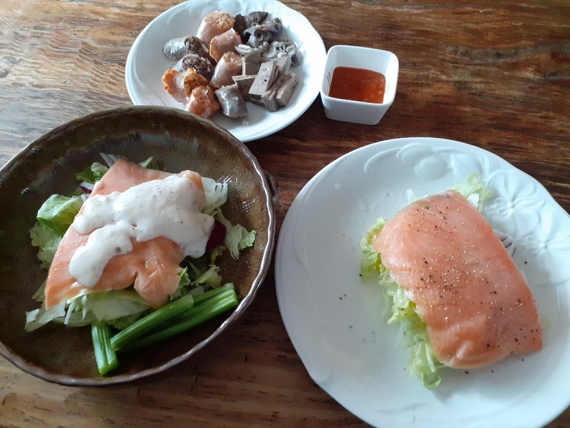 연어샐러드&순대 어울리나요?ㅎㅎ
