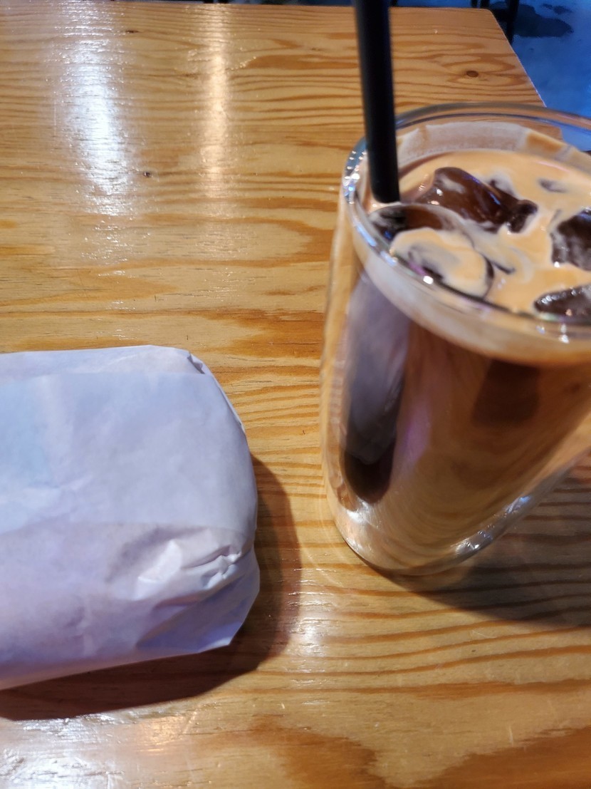 치킨버거와 아이스아메로 점심!!
