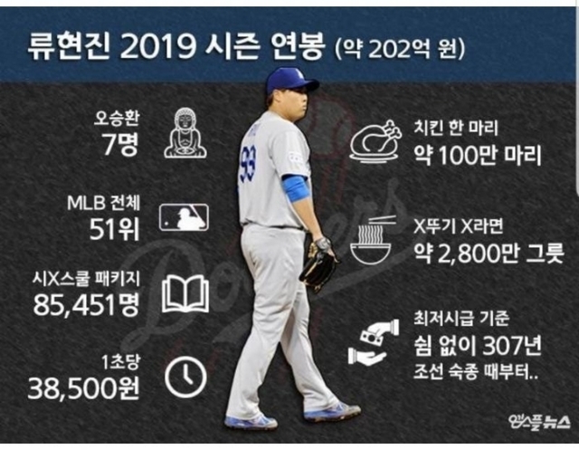 류현진 연봉 체감~