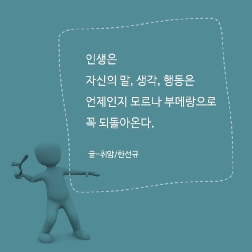 인생은 부메랑이다.나에게서 나온것들은 언젠간 나에게로 돌아온다~