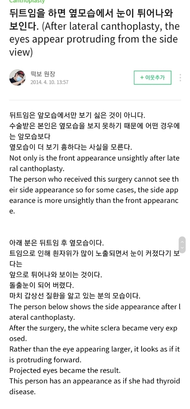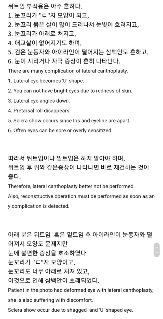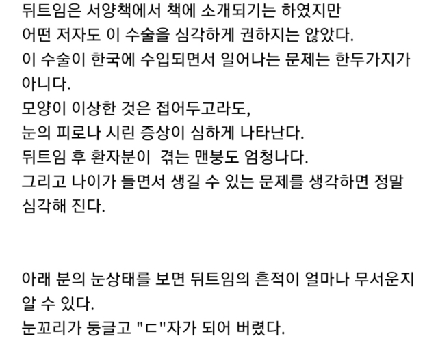 뒷트임(밑트임) 말리는 글 (눈을 기형으로 만드는 수술)