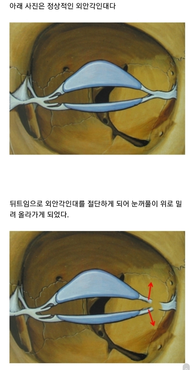 눈 인대를 자르는거라 돈주고 노화촉진하는 수술이야