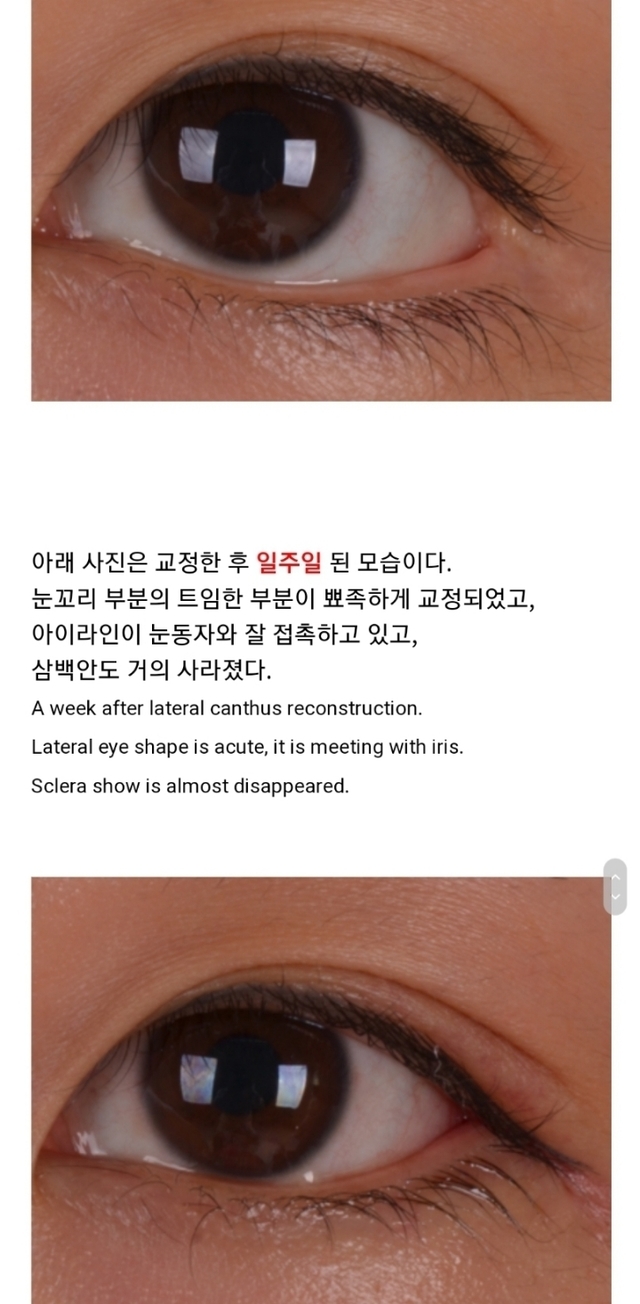 뒷트임한거 제자리로 붙인 사진보면 눈매가 상큼해지고 어려지는게 보임