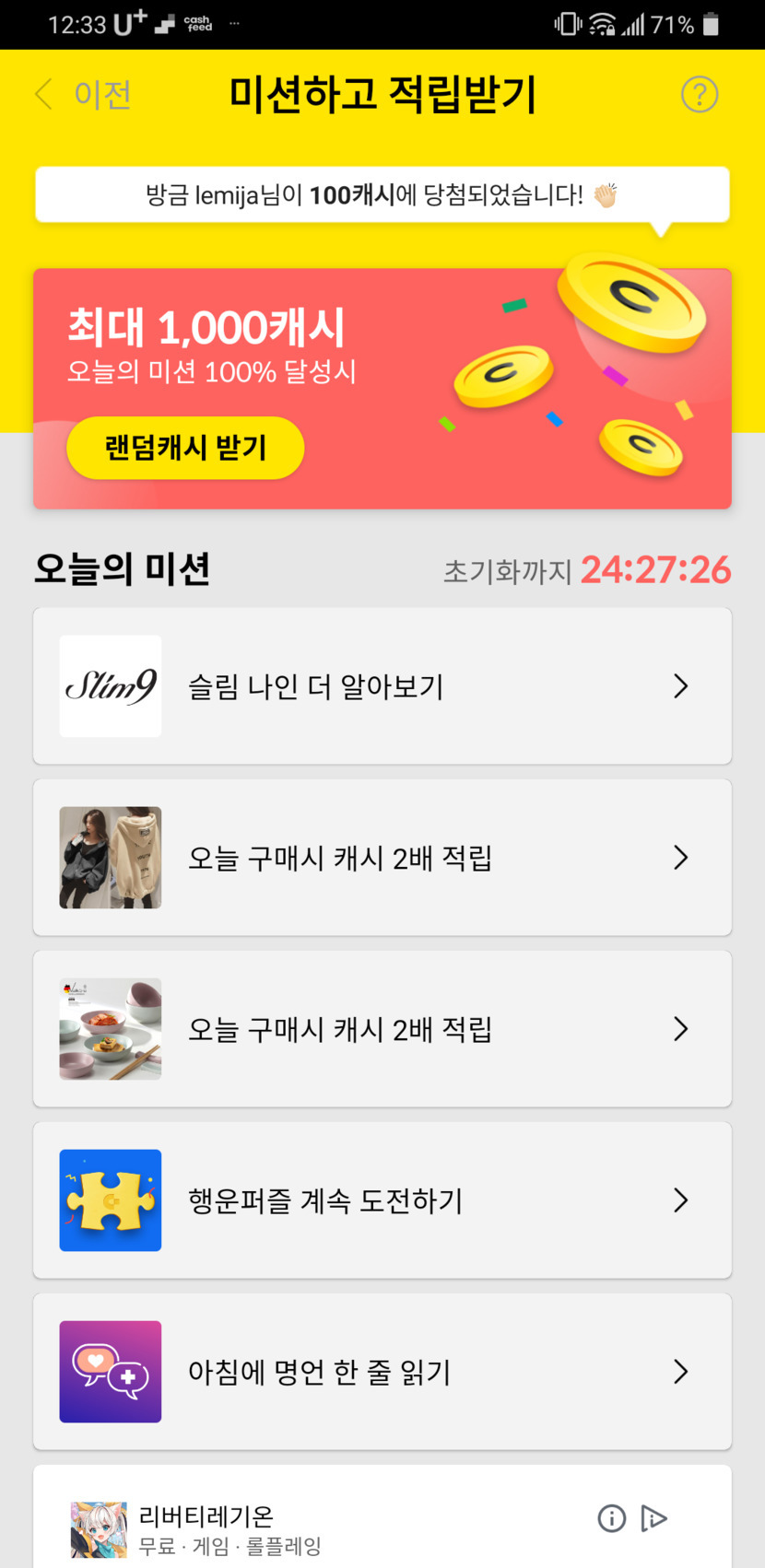 캐시슬라이드 미션