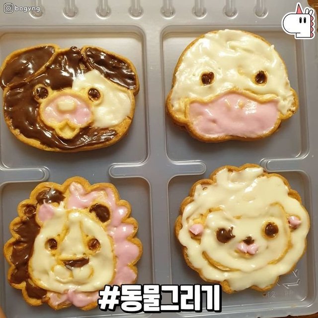 좋아하는 동물을 비스킷에 그리면