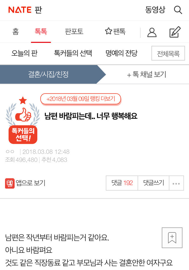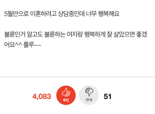 19.08.10 904 읽음 [네이트판]남편이 바람 피는데 너무 행복해요 가오리양반 구독하기 0 3 콘텐츠의 수익 0 이혼을 응원합니닼ㅋㅋㅋㅋㅋ행복한 이혼ㅋㅋㅋㅋㅋㅋㅋ 3 0 / 300 입력