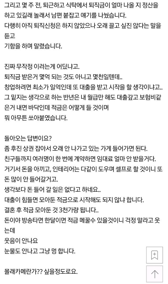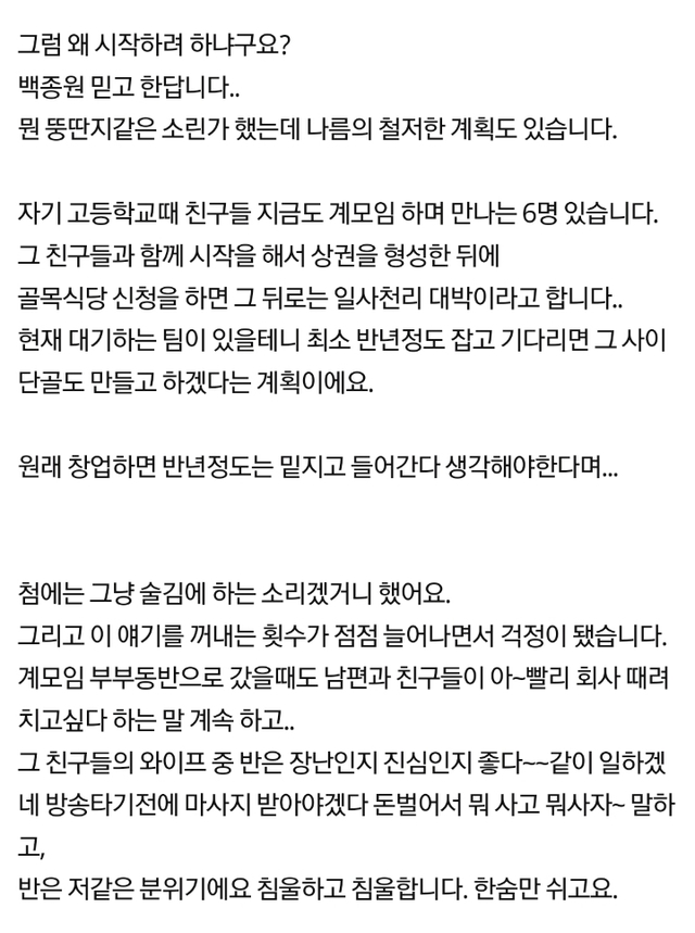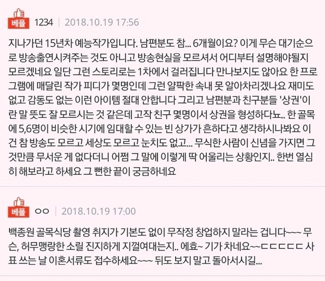19.08.10 189 읽음 [네이트판]남편이 백종원 믿고 창업을 하겠다고 합니다. 우오샤링 구독하기 1 0 콘텐츠의 수익 0 제발 정신차리고 일 열심히 하시길 남편..... 0 0 / 300 입력