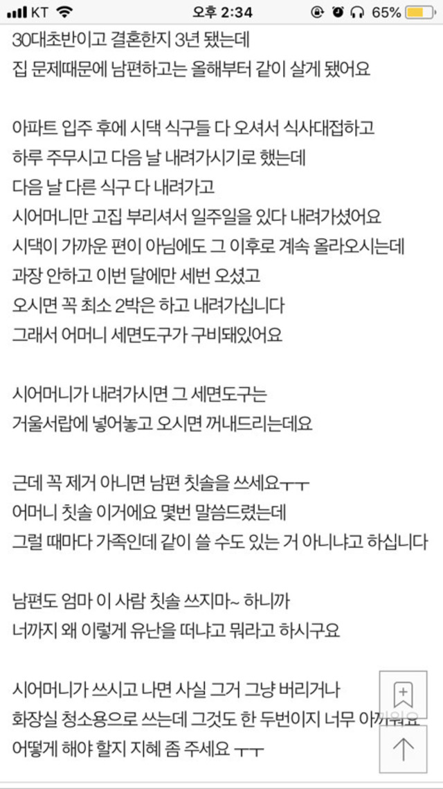[네이트판] 시어머니가 자꾸 제 칫솔을 쓰세요