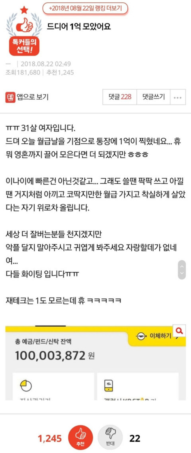 [네이트판] 드디어 1억 모았어요
