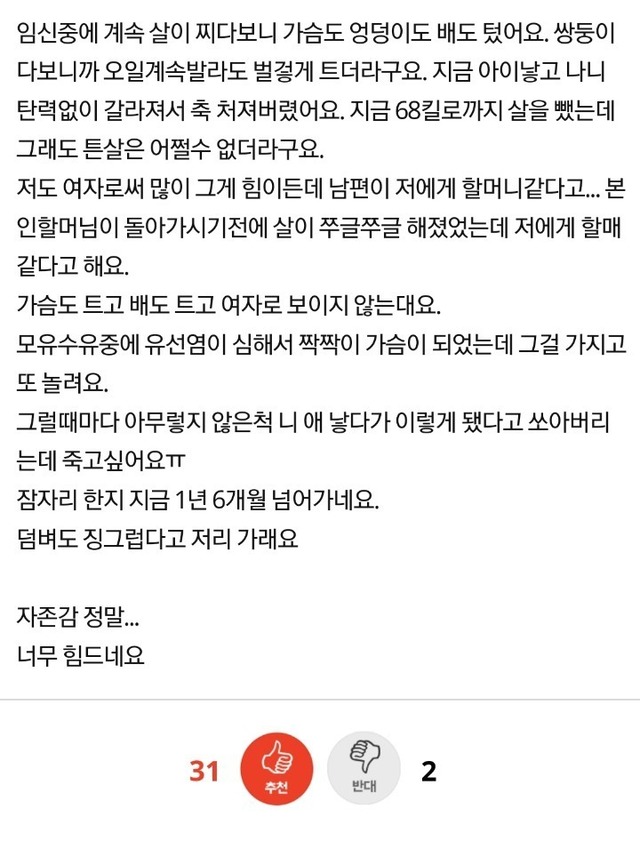 아기낳고 남편이 절 징그러워해요