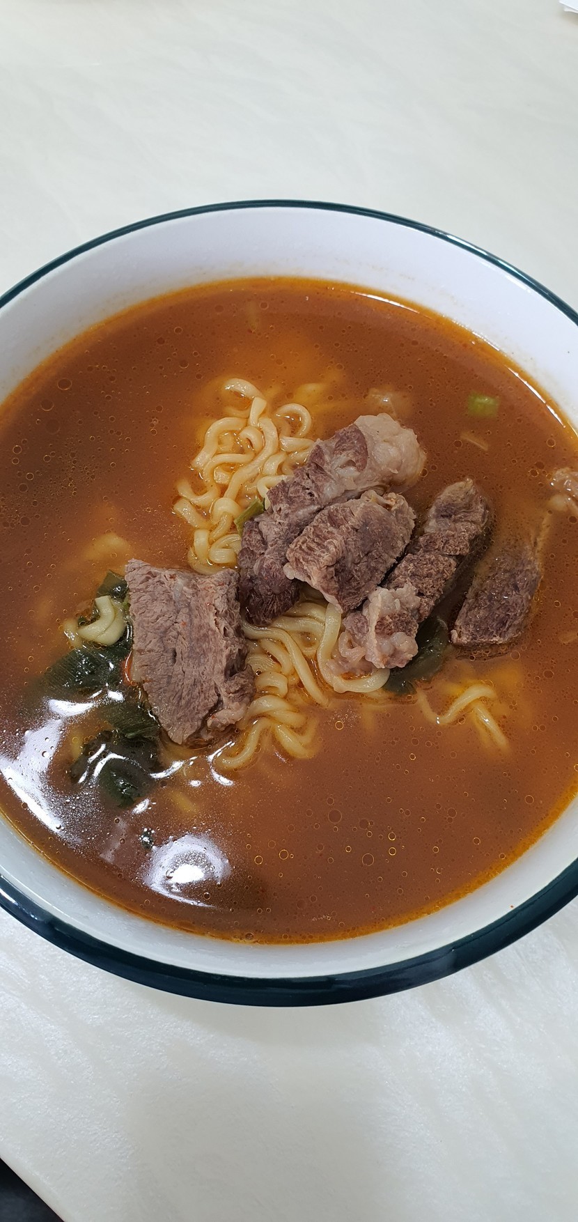 소고기로 찐하게 우려낸 라면과 탕수육, 김치~