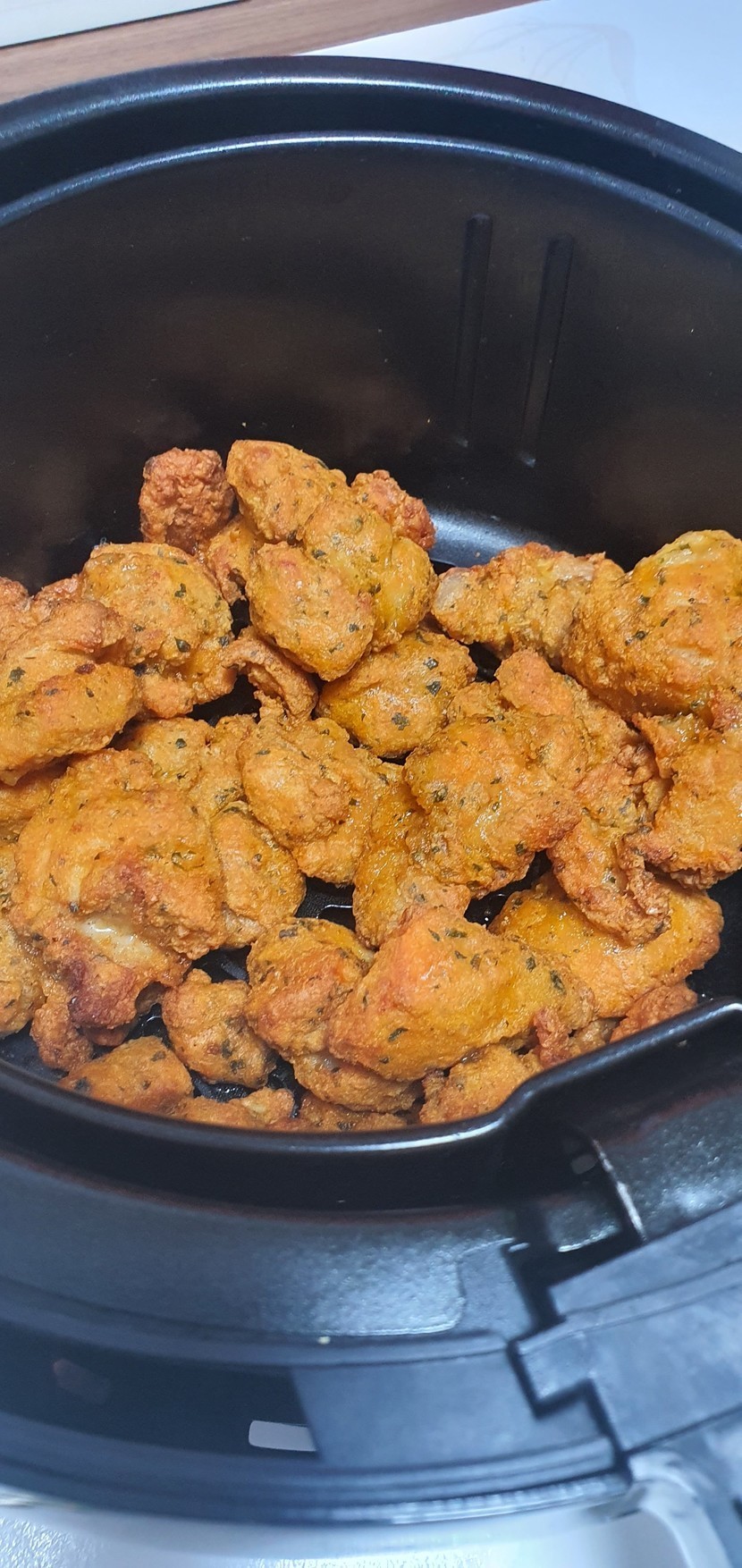 예열한 에어 프라이어에 치킨 넣고