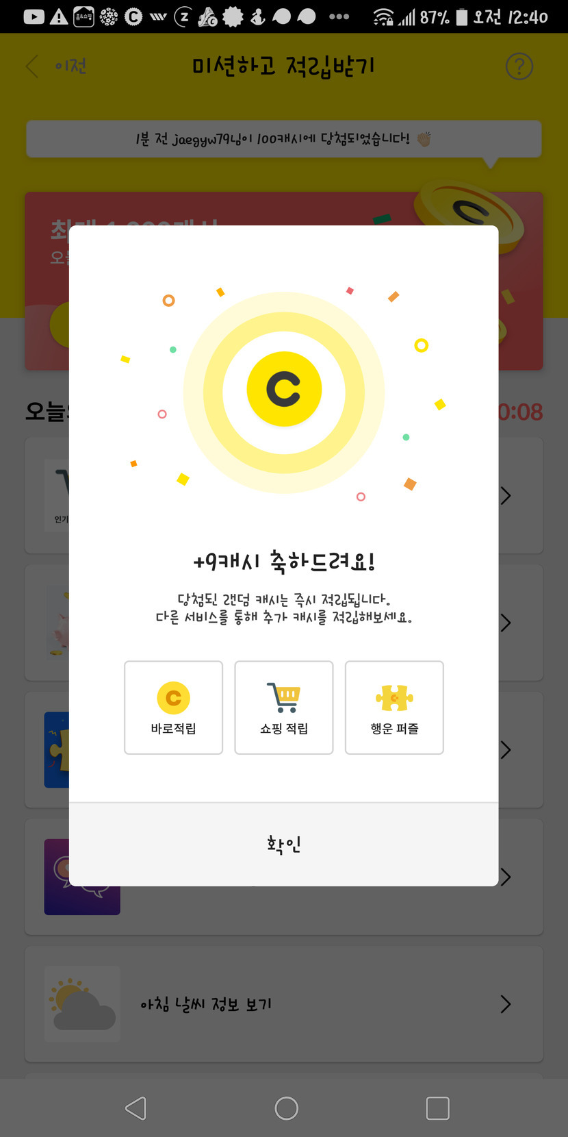 9캐시 나왓어요