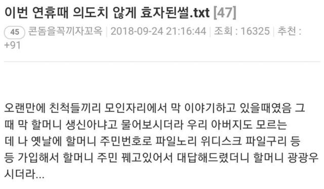 19.08.12 469 읽음 연휴때 의도치 않게 효자된 썰.JPG 4jPXEt 구독하기 0 1 콘텐츠의 수익 0 어둠의 효자...ㅋㅋㅋㅋㅋㅋㅋ엇나간 효심... 1 0 / 300 입력