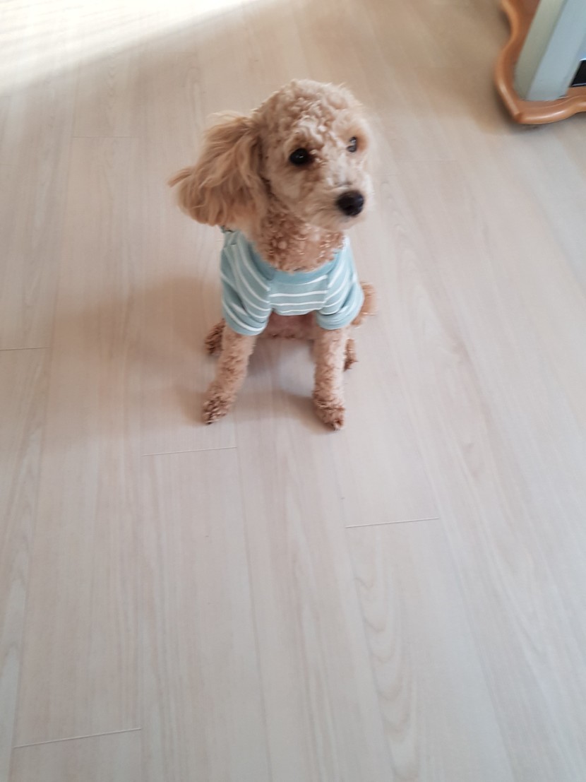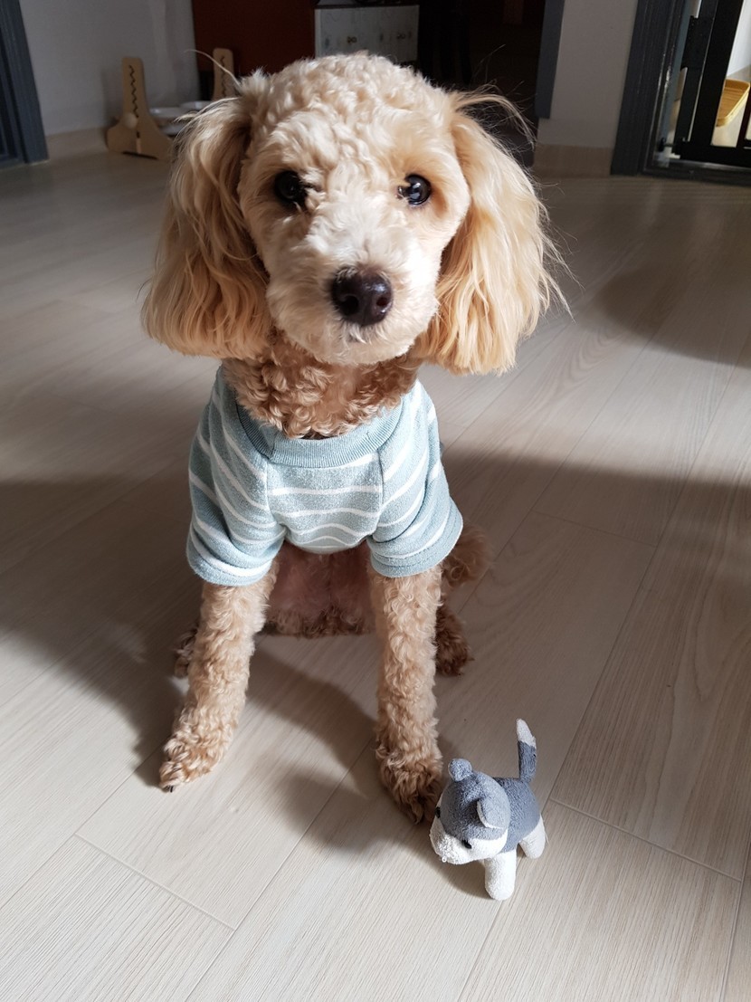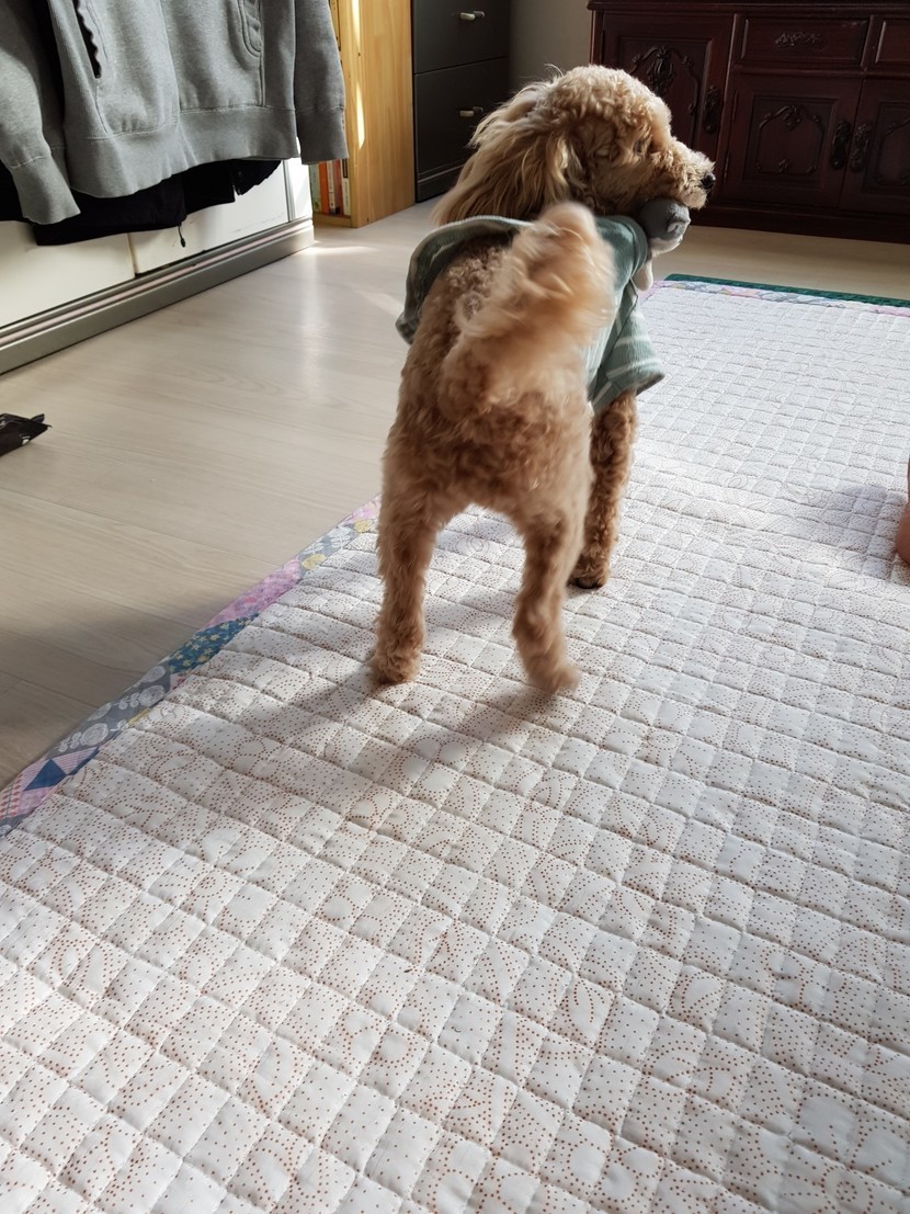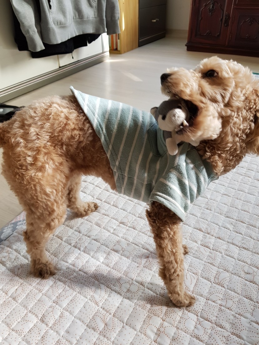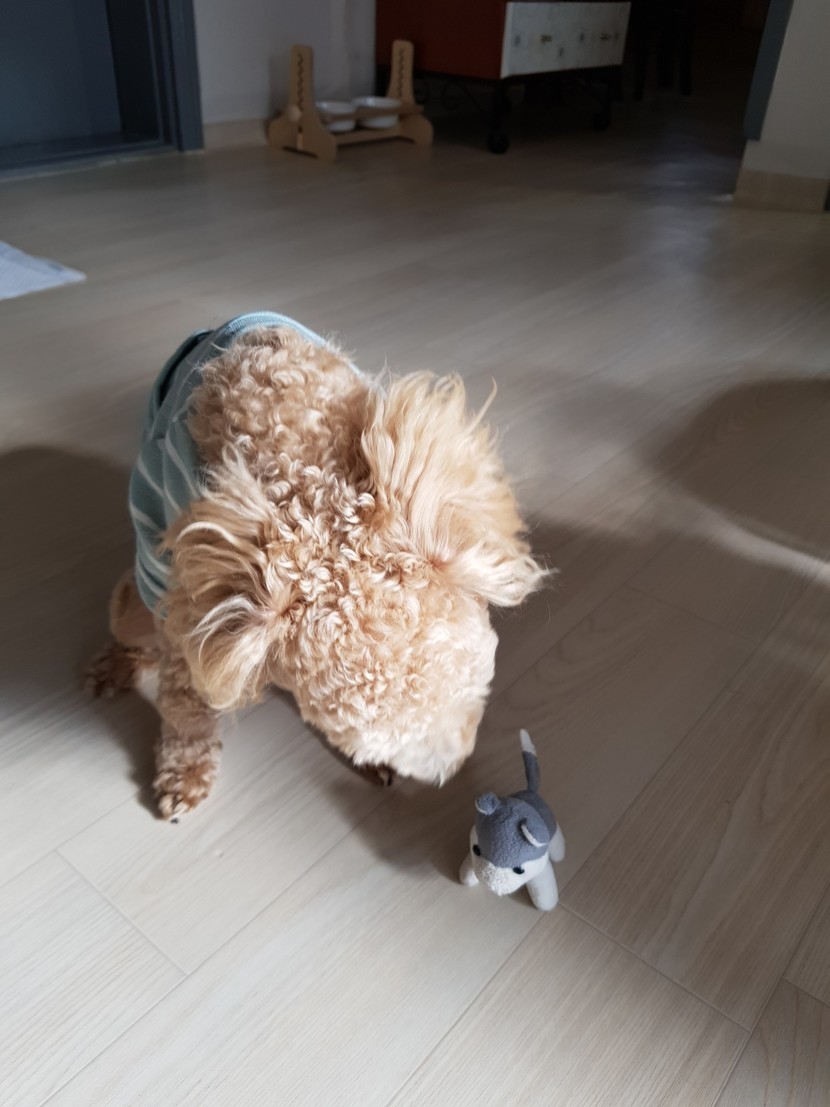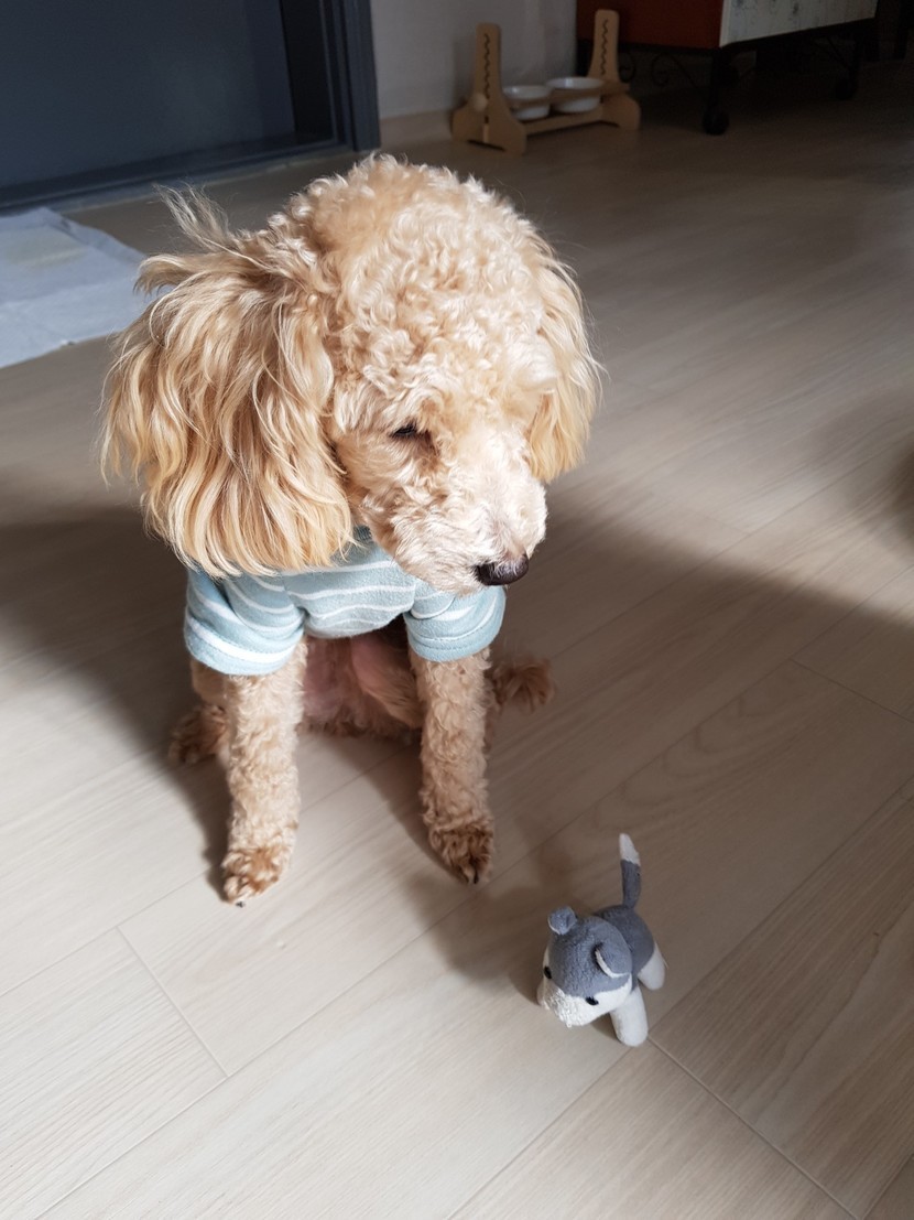 강아지인형과같이놀고있는우리두부