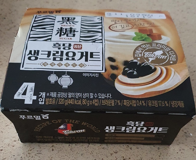 20.10.29 158 읽음 흑당생크림요거트 ljh1461 구독하기 23 22 콘텐츠의 수익 17 흑당 버블티 종류를 좋아해서 흑당 생크림요거트 보고 맛이 궁금해 샀어요먹어보니 우리가 아는 (흑당)흑설탕 + 생크림요거트 맛이네요사진에는 안보이는데 버블티에 들어가 있는 펄?(버블)이 3~4개정도들어 있어요 작아서 그냥 넘겨도 모르겠어요 22 0 / 300 입력