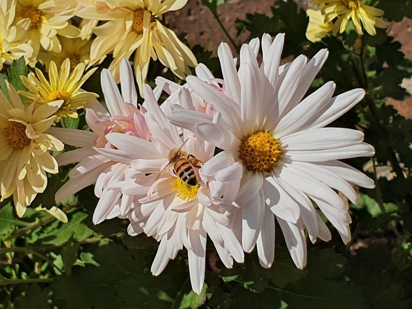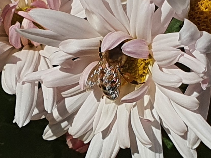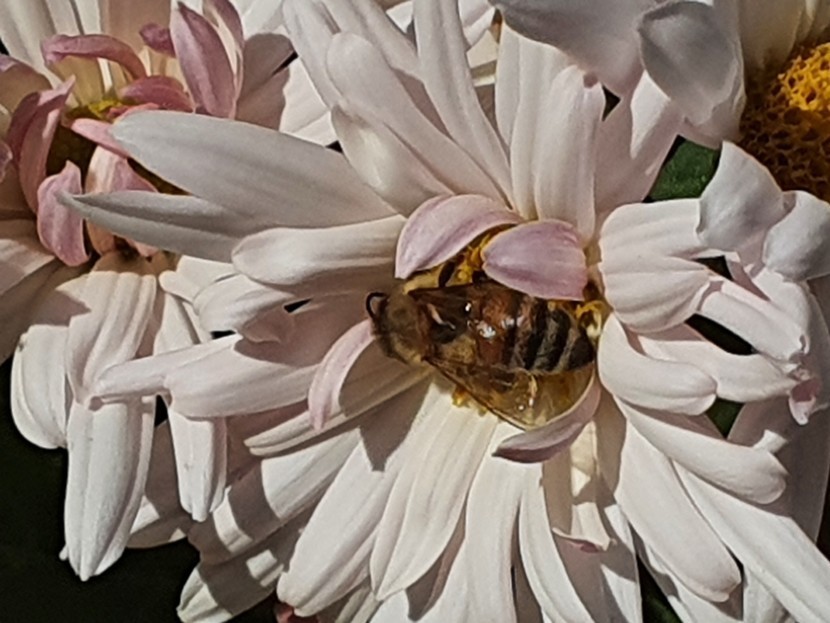 흰색 꽃 속에 숨은 꿀벌~♡♡