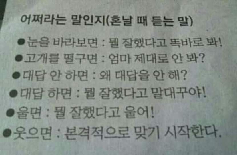 엄마의 꾸중(대처 불가)