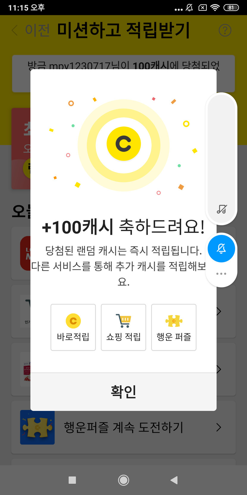 미션 100캐시 나옴 헐