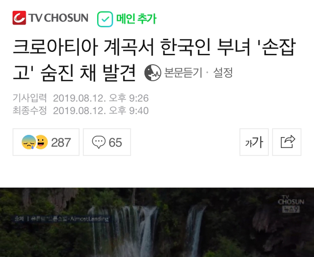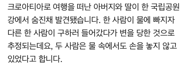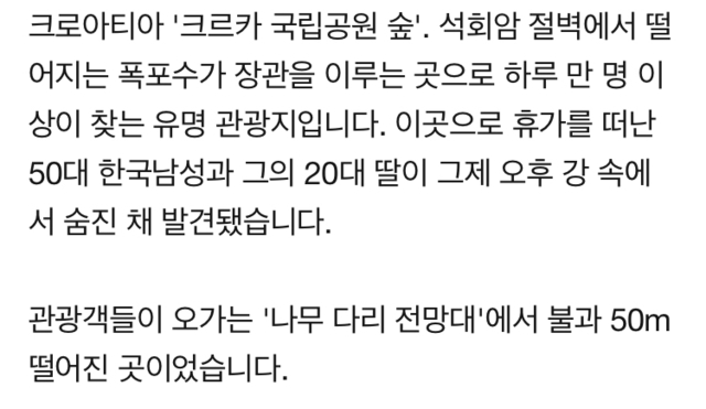 크로아티아 계곡서 한국인 부녀 '손잡고' 숨진 채 발견