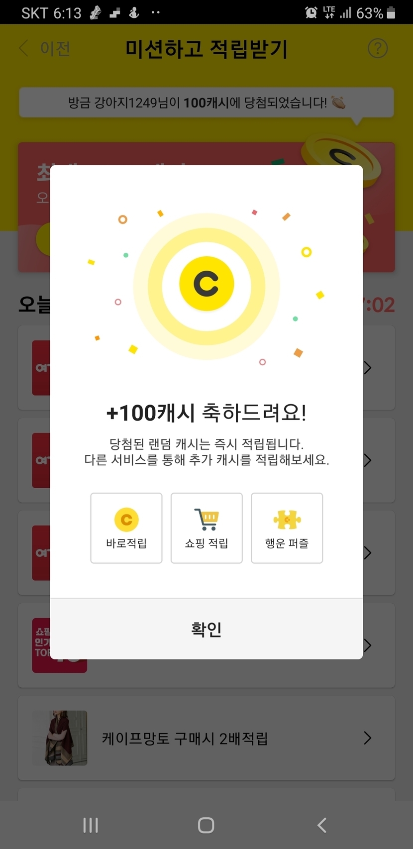 랜덤캐시 100원이예요