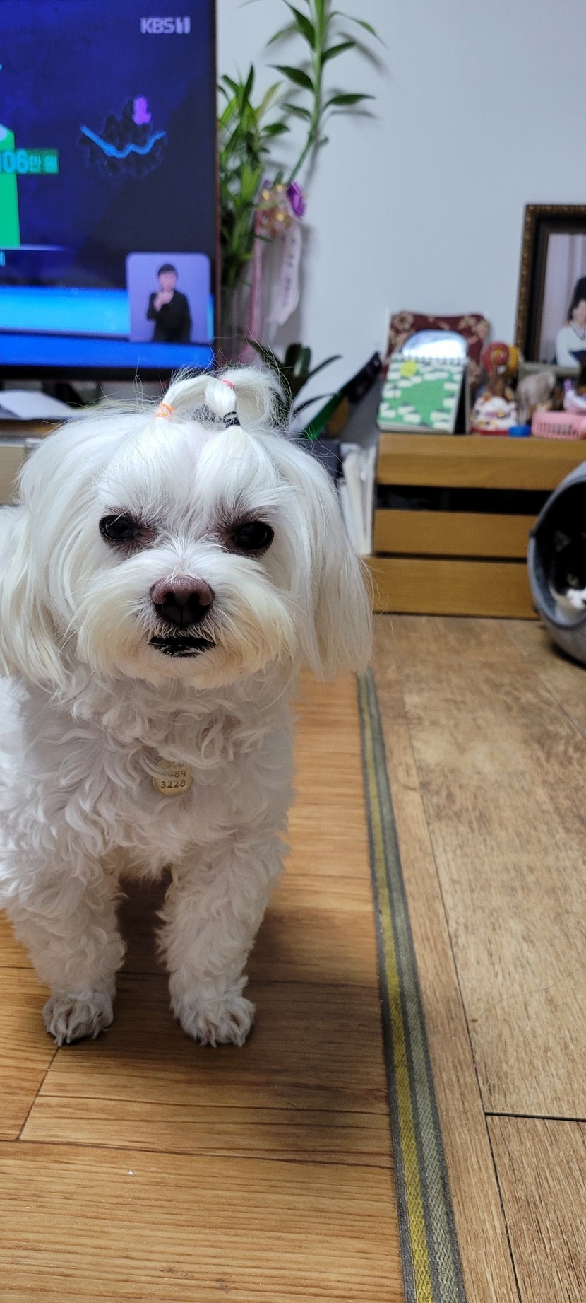 머리를 안묶는다구 난리치다가