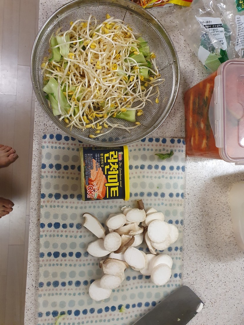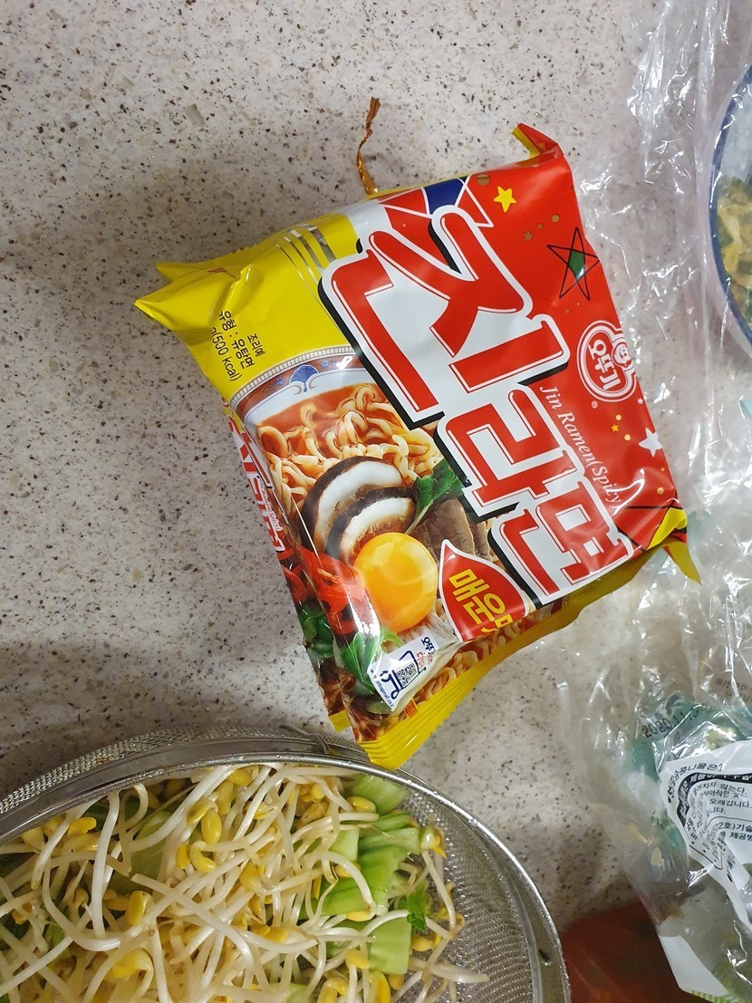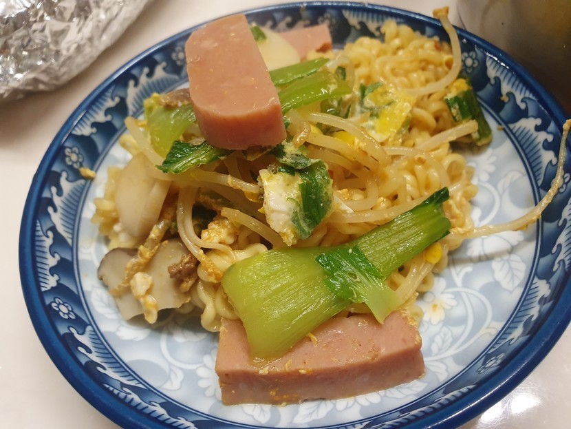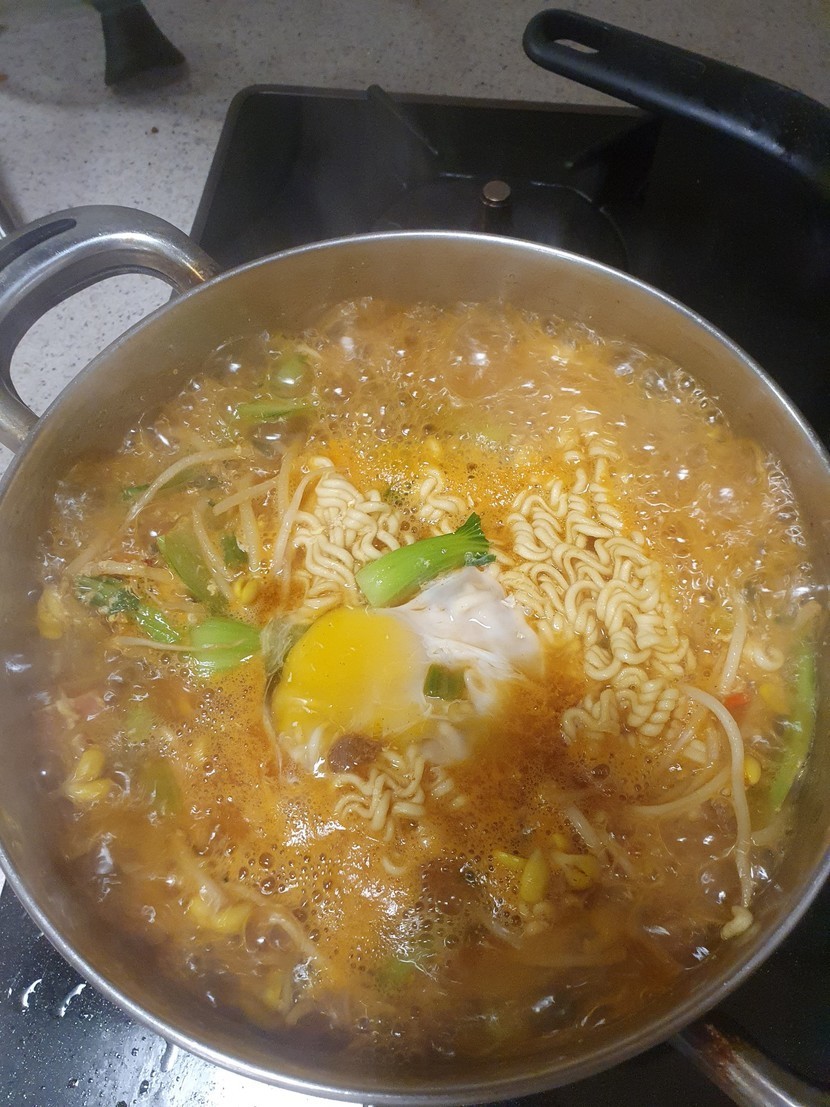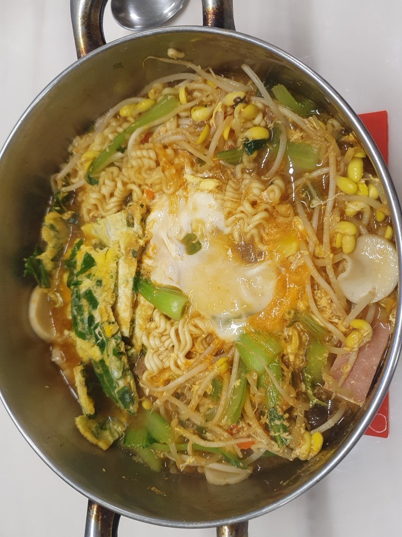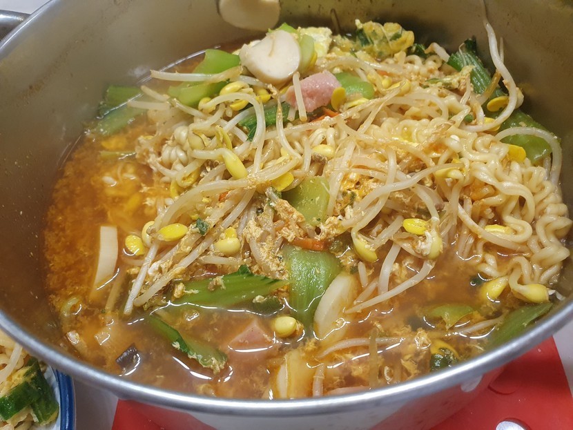 라면과 햄,야채의 조합