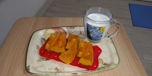 동 터오는 아침, 단호박찜과 우유 한잔으로
