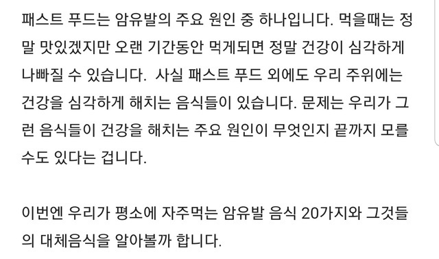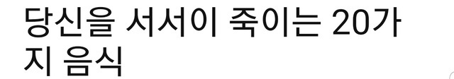 19.12.03 851 읽음 당신을 서서히 죽이는 20가지 음식 1탄 (너무많네요ㅜㅜ) maha 구독하기 42 51 콘텐츠의 수익 625 출처 : https://story-daily.com/cancerfood-korean/?utm_source=taboola&utm_term=cashfeed-app-android_1209451&utm_content=2840424079&utm_medium=referral&utm_campaign=CancerFood-KR-DTM-SD-TB 51 0 / 300 입력