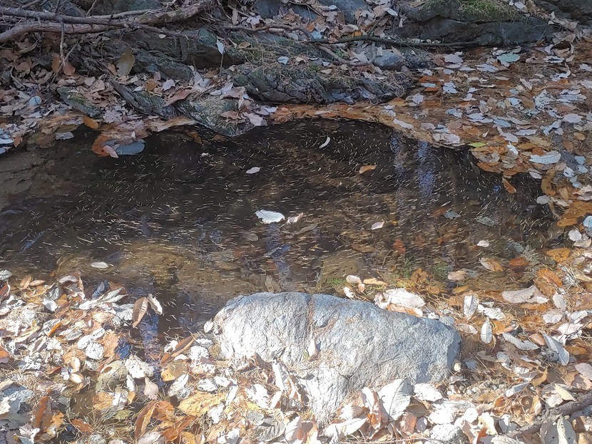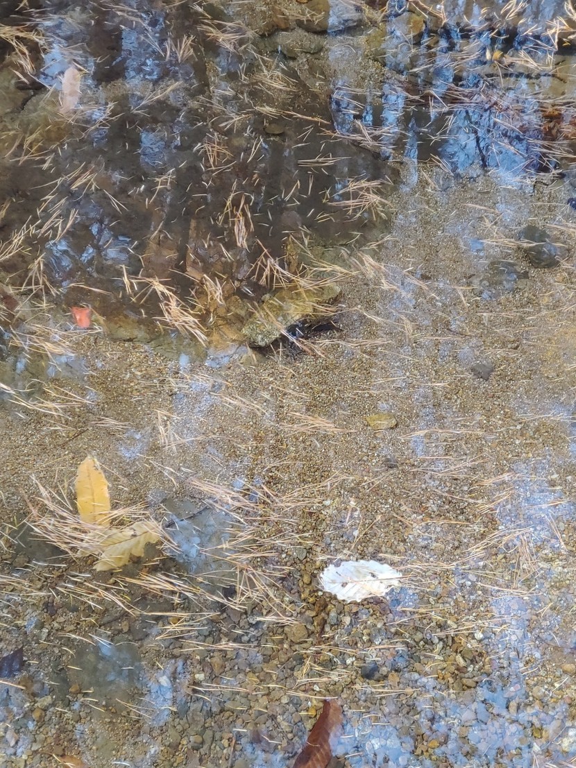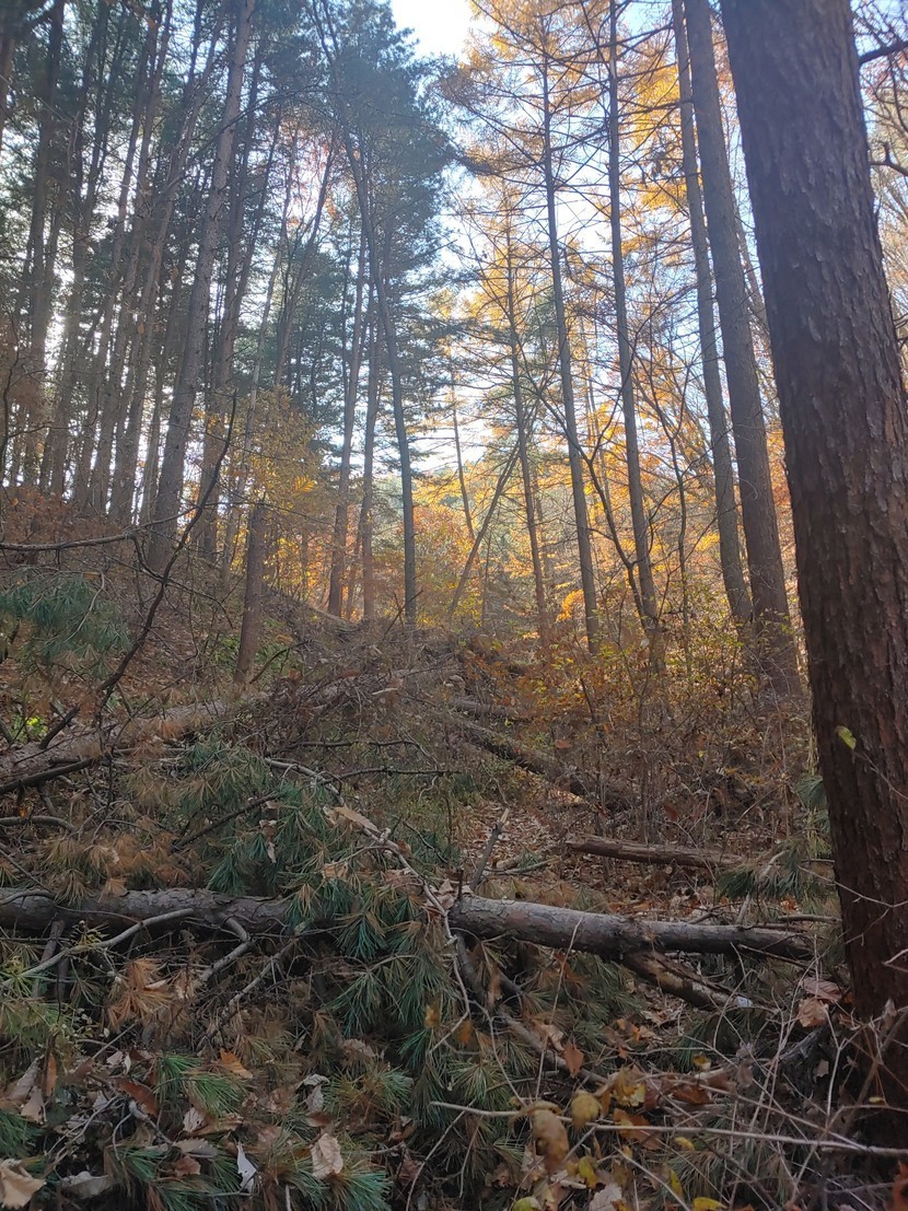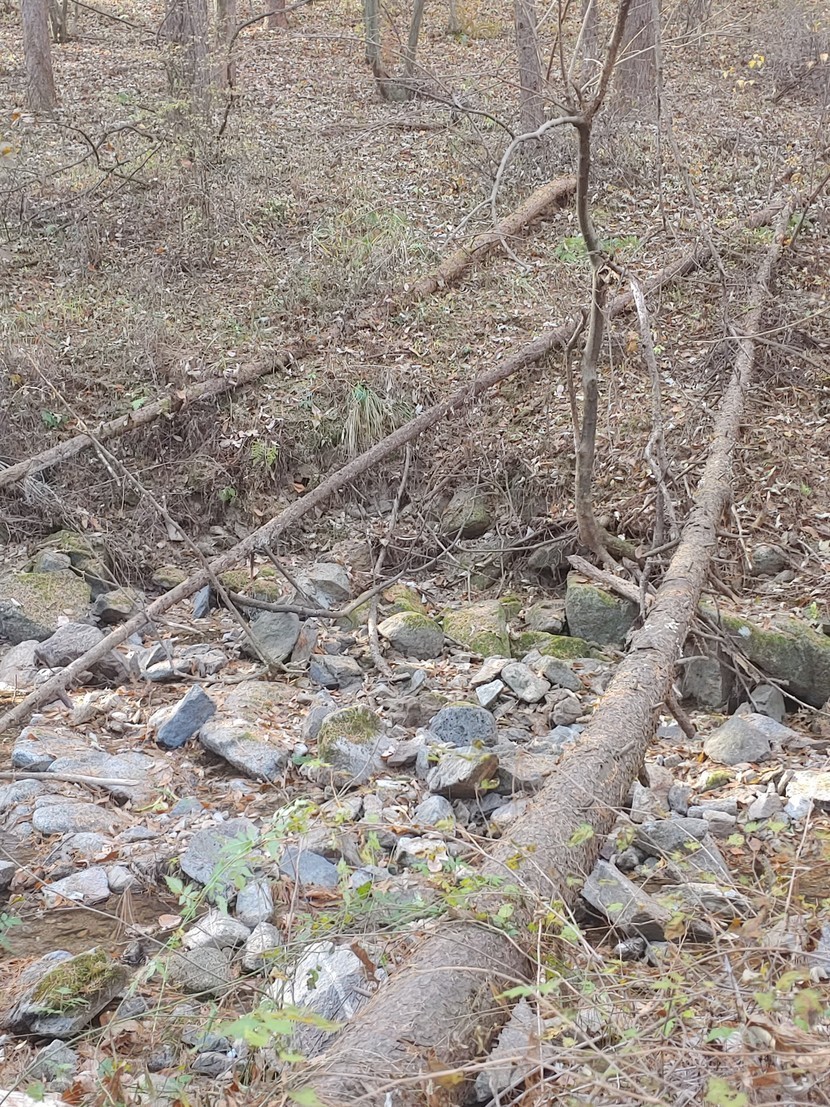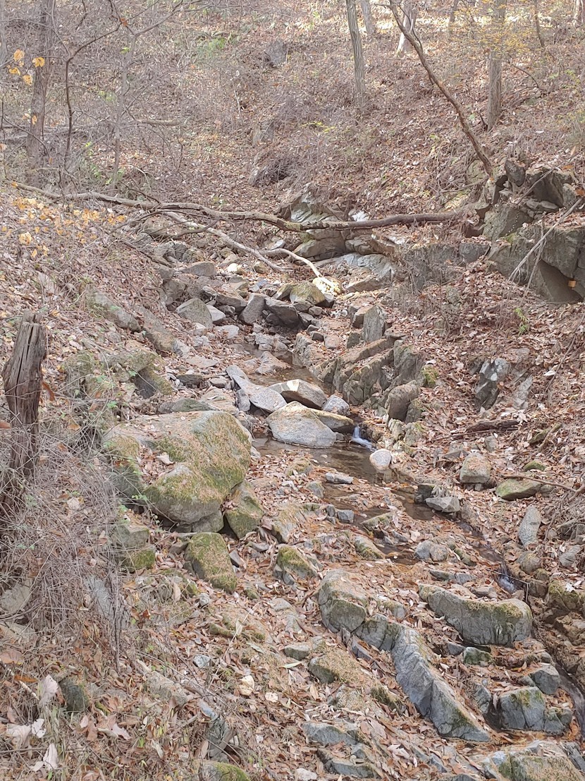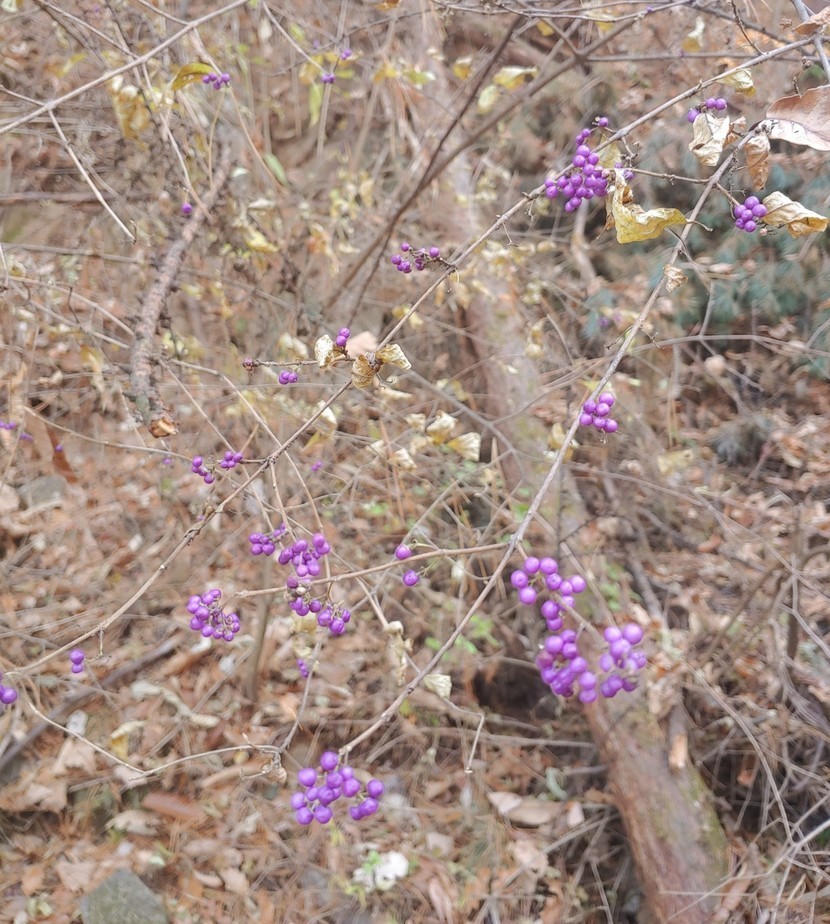매번 가던 왼쪽 소풍길을 두고 오늘은 오른쪽 개울이 흐르는 길로 접어들었다40분가량 걸어가는동안 가는길 곳곳에 쓰러져있는 나무들이 눈에 들어왔다어떤나무는 쓰러져있은지 오래되어 파랗게 이끼가 돋아 예쁘게 보였다흐르는 물위로 나뭇잎들이 떨어져 짖ㆍ분해 보이기도 했지만 그림을 그려놓은듯 솔잎가지들의 모여있는 모습도운치 있어보인다잎은 다 떨어지고 앙상한 가지만 남아있는 나무의 보라색 이름모를 열매! 뿌리까지 뽑혀 쓰러진 나무의 뿌리에서 새싹이 돋아 다시 자라고 있는 어린나무가 기특하고 예뻐보인다