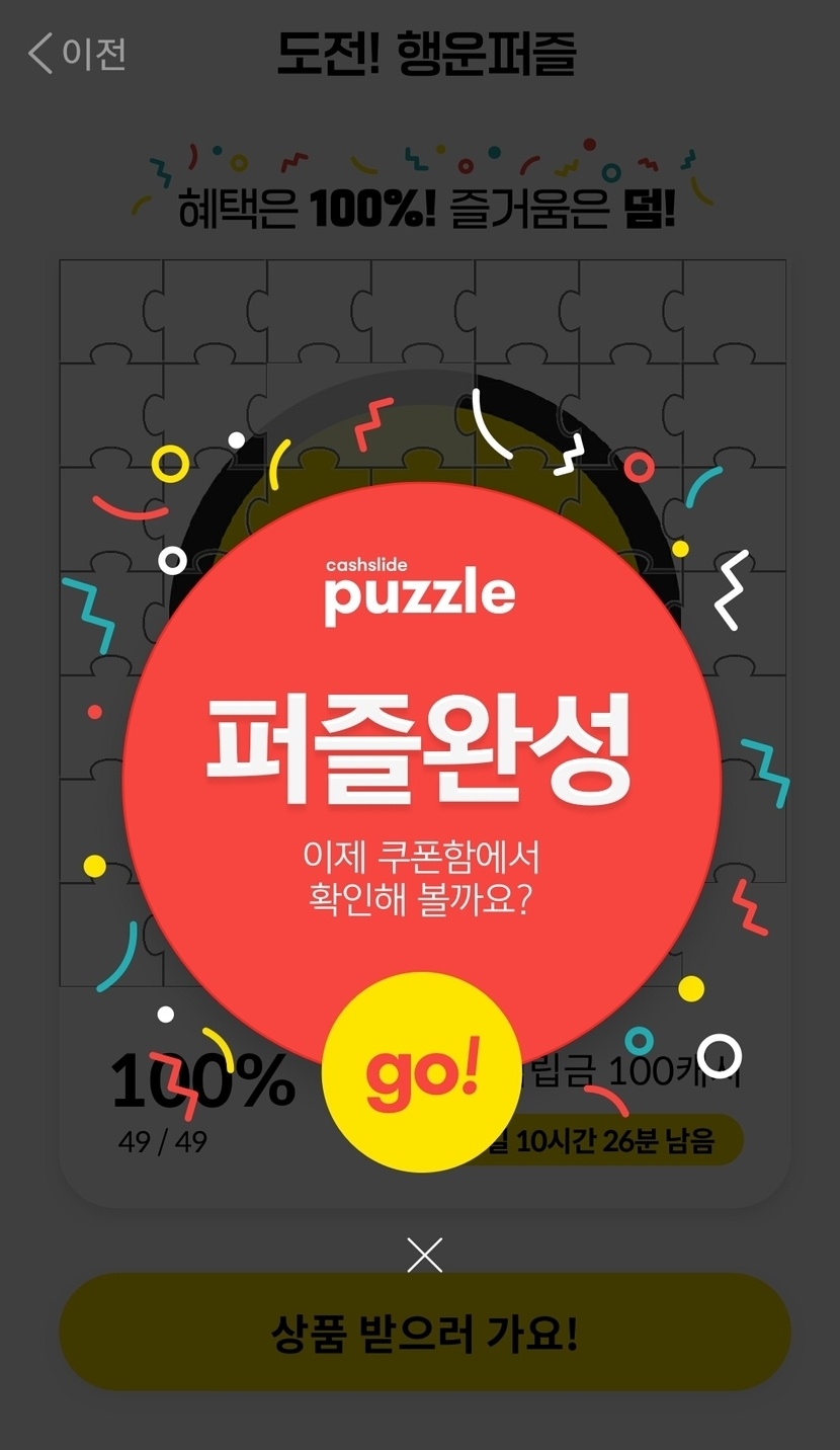 100캐시 퍼즐&캐피미션 완료