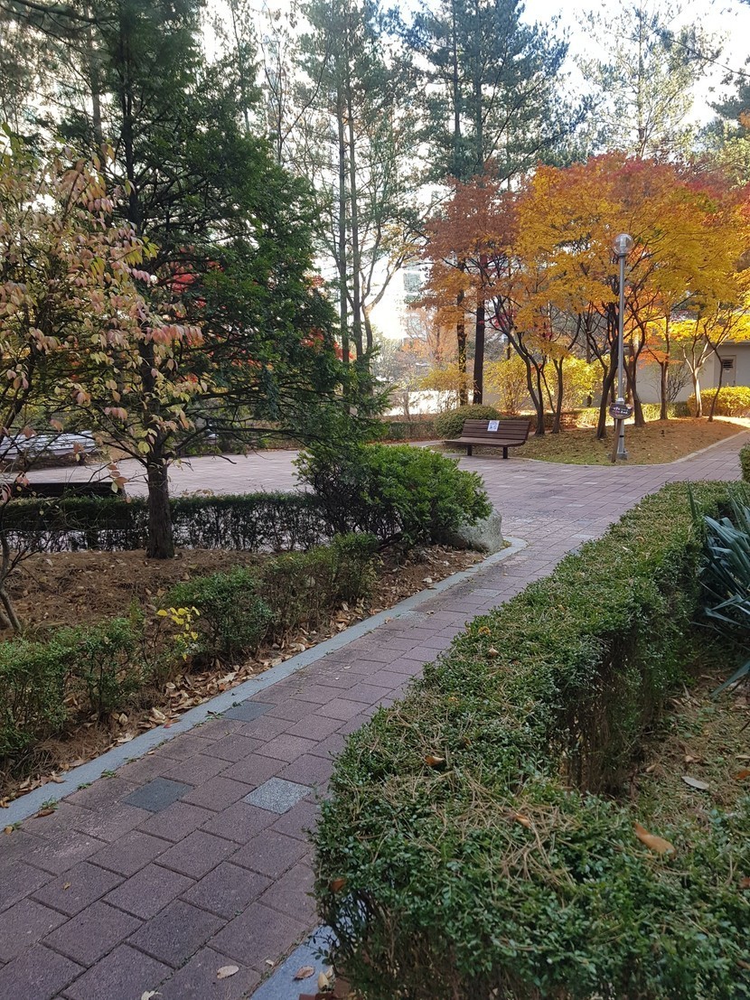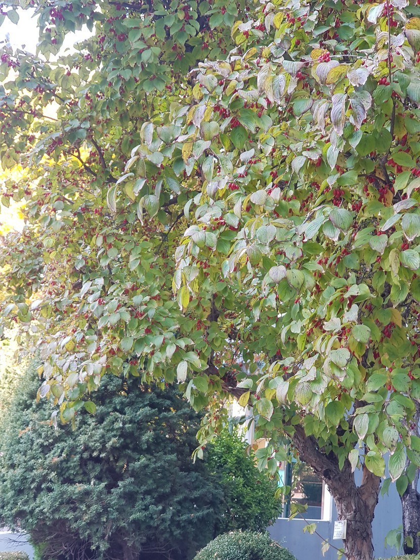 늦가을 아파트 화단의 산수유 나무