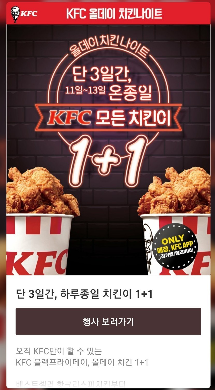 20.11.12 258Β μ½μ λ΄μΌκΉμ§ ππΊkfc μΉν¨ππ»μ΄ νλ£¨μ’ μΌ 1+1!ππ ufo6913 ꡬλ νκΈ° 6 8 μ½ν μΈ μ μμ΅ 7 λ΄μΌκΉμ§ νλ£¨μ’ μΌ μΉν¨μ΄ 1+1μ΄λμ!μλλ λ°€9μλΆν° 1+1μ΄κΈ΄ νμ§λ§ μ΄μ¨λ μ’λ€μλ€λ€ μ΄κΈ°νμ μ λ ΄νκ² μΉν¨λμλ건 μ΄λ¨κΉμ 8 0 / 300 μ λ ₯