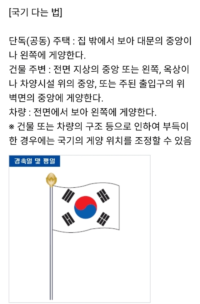 8월 15일 광복절 국기 다는 법