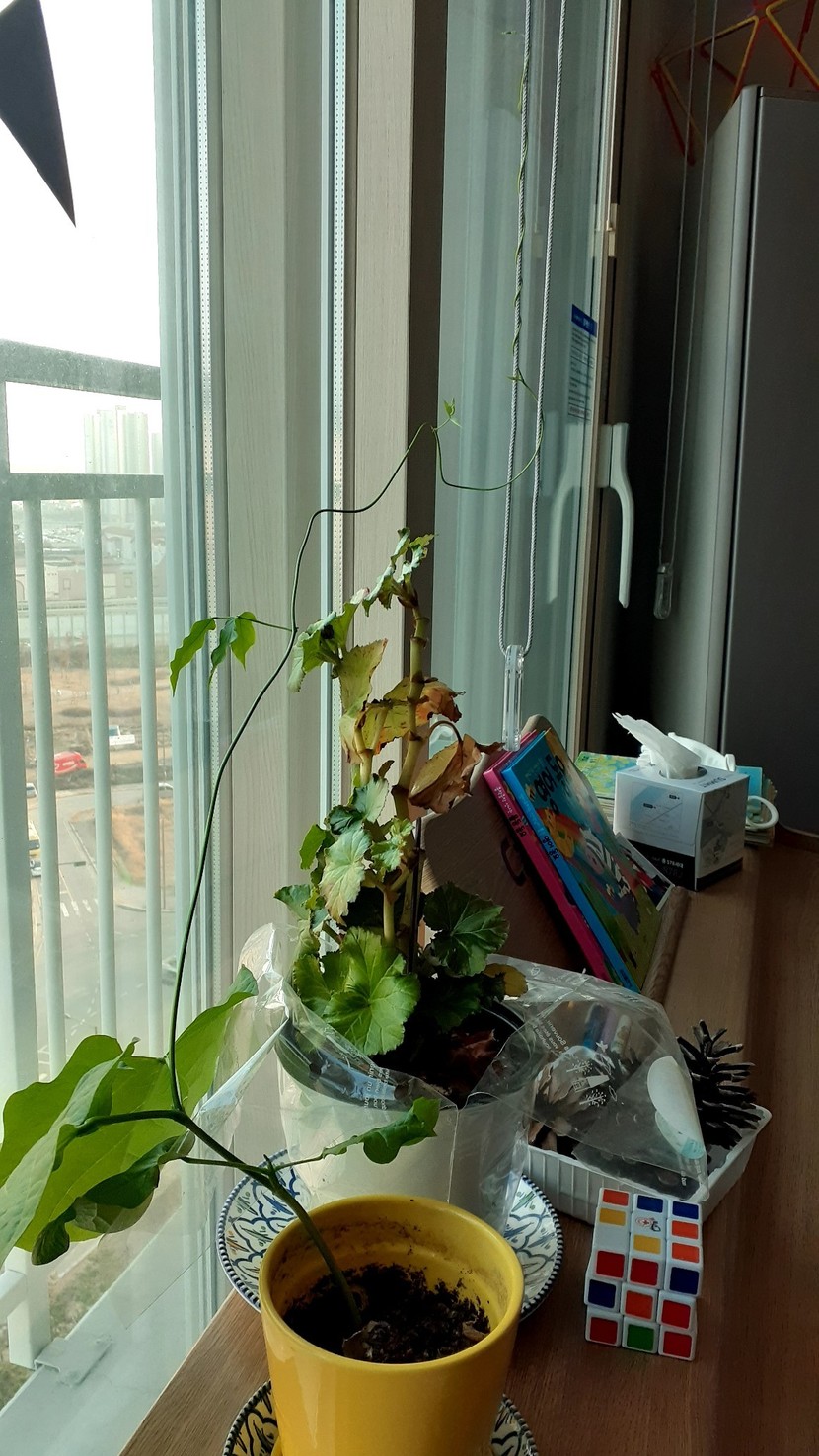 살기위한 몸부림~~참신기하다. 타고 올라 가는 강남콩~~