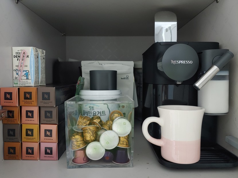 20.11.19 452 읽음 [네스프레소] 집에서 라떼 만들어 먹어요. 좋은날1020 구독하기 7 9 콘텐츠의 수익 10 집에서 캡슐커피 많이들 드시죠?저도 네스프레소 캡슐커피 머신으로하루에 한 잔씩 커피를 내려 마시는데요. 이전에 오래 쓰던 머신이 고장나서 새로운 머신을 장만했습니다. 이건.. 라떼 제조가 가능한 머신이죠!우측에 우유 추출기가 보이시죠?이렇게 먼저 뜨거운 우유를 추출한 다음..에스프레소 샷을 추출 합니다. 저는 투 샷으로!맛있는 카페라떼 완성!강추에요~ 여러분도 집에서 라떼 만들어 드세요~ 9 0 / 300 입력