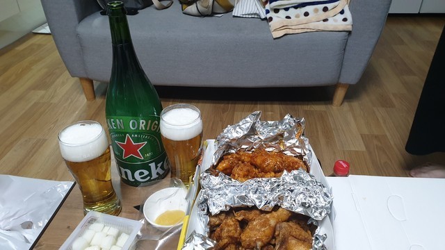 하이네켄 매그넘 선물받은거랑 치맥!!